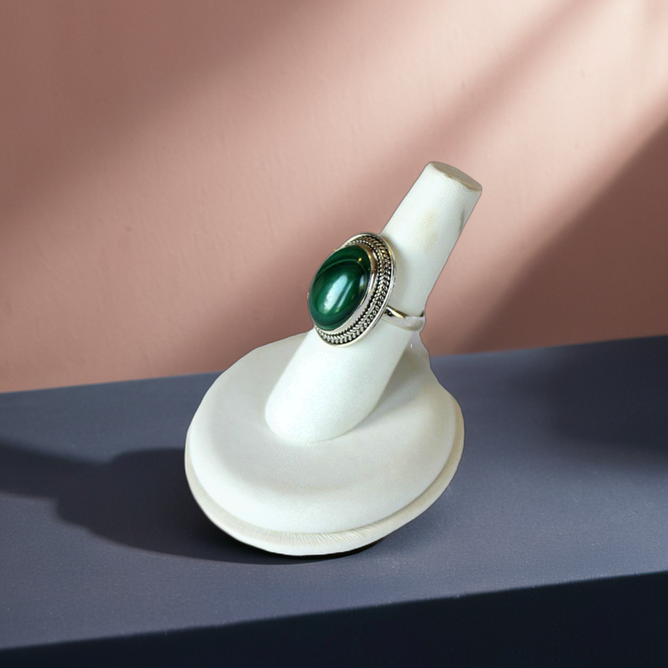 แหวนเงินมาลาไคท์คลาสสิกสำหรับผู้หญิง925แฟชั่นเครื่องประดับงานปาร์ตี้สั่งทำพร้อมเทคโนโลยีช่องทางการผลิต