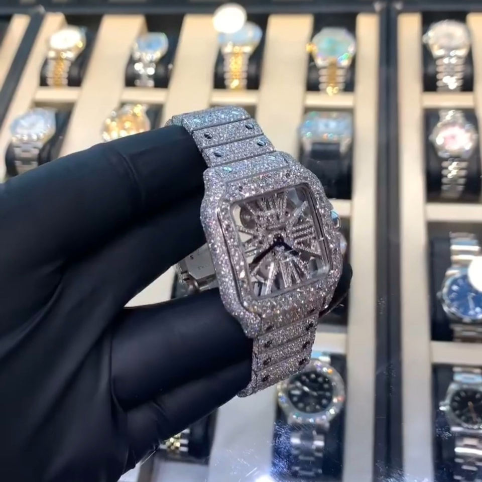 นาฬิกาสแตนเลสสตีลสำหรับผู้ชายหน้าปัดใหญ่ออกแบบได้ตามต้องการดีไซน์ใหม่ล่าสุดประดับเพชรตามสั่ง