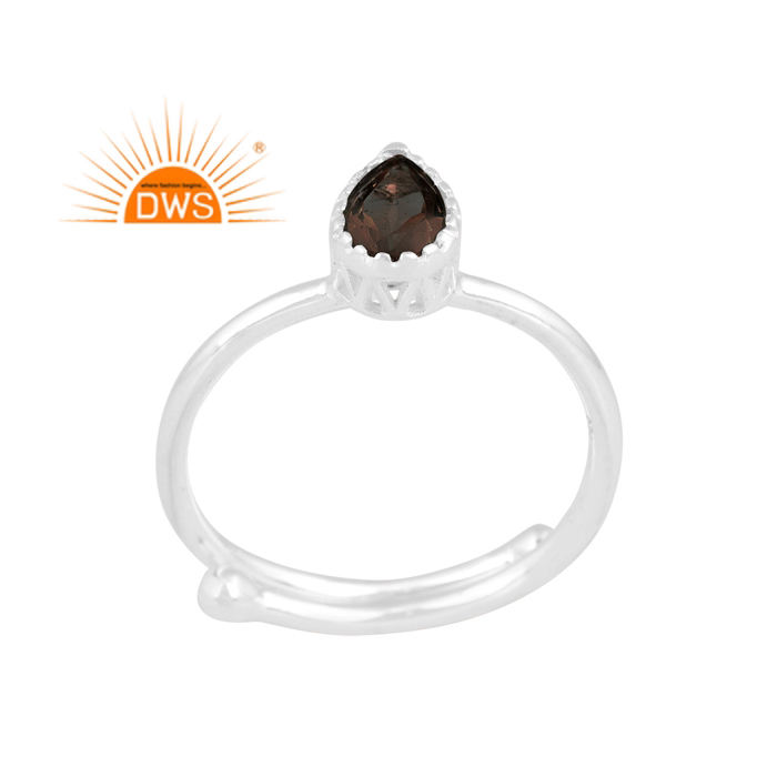 แหวนควอทซ์สโมควอทซ์สโมคกี้สีเงินสเตอร์ลิงธรรมชาติแบบเรียงซ้อนได้ทันสมัยออกแบบได้ตามต้องการผู้ผลิตเครื่องประดับตามต้องการ