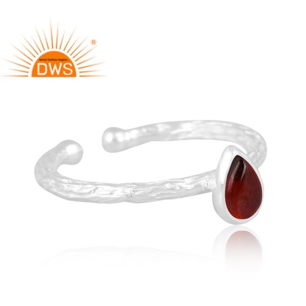แหวนพลอยโกเมนธรรมชาติดีไซน์แบบปรับได้ทำจากเงินแท้ปรับได้