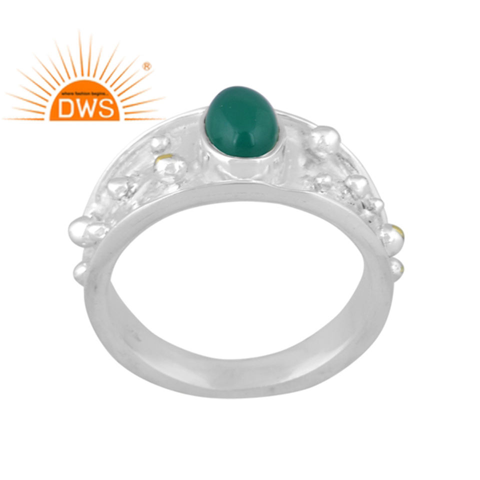 แหวนอัญมณีสีเขียวพลอยโอนิกซ์สีเงินสเตอร์ลิงแบบละเอียดทันสมัยล่าสุด