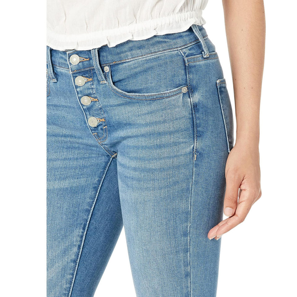 กางเกงยีนส์ทรงสกินนี่เข้ารูปสำหรับผู้หญิง คุณภาพสูง ดีไซน์ทันสมัย สีฟ้าอ่อนฟอก ผ้าเดนิม พร้อมโลโก้ที่เอว