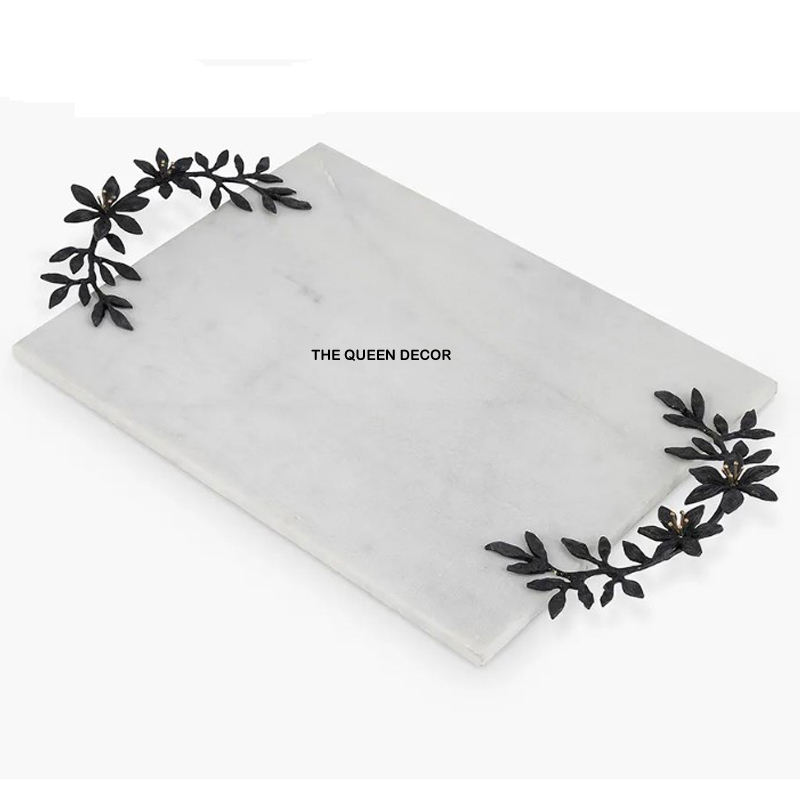 ถาดตกแต่งทรงกลมขอบสีทองขัดเงา วัสดุหินอ่อนลายหินอ่อนทันสมัย พร้อมขอบสแตนเลส