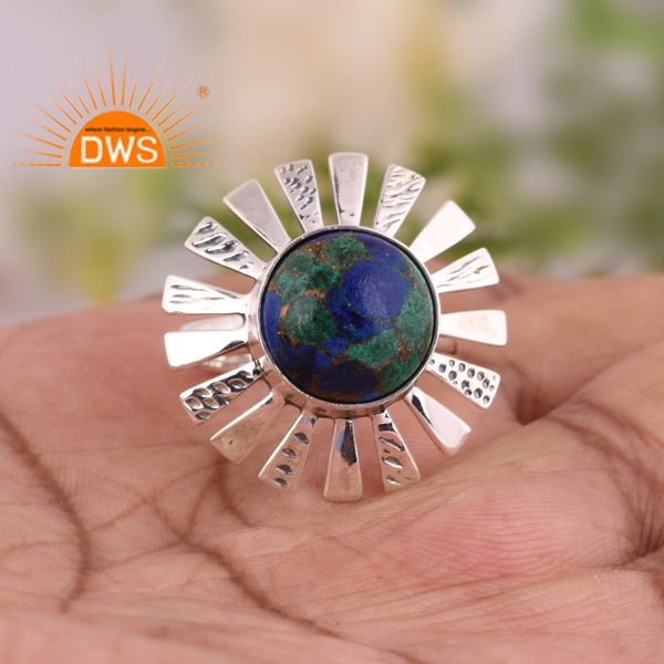แหวนทองแดงอะซูไรต์มรกตสีเงินสเตอร์ลิงออกซิไดซ์ล่าสุดผู้ผลิตเครื่องประดับแบบวางซ้อนกันได้
