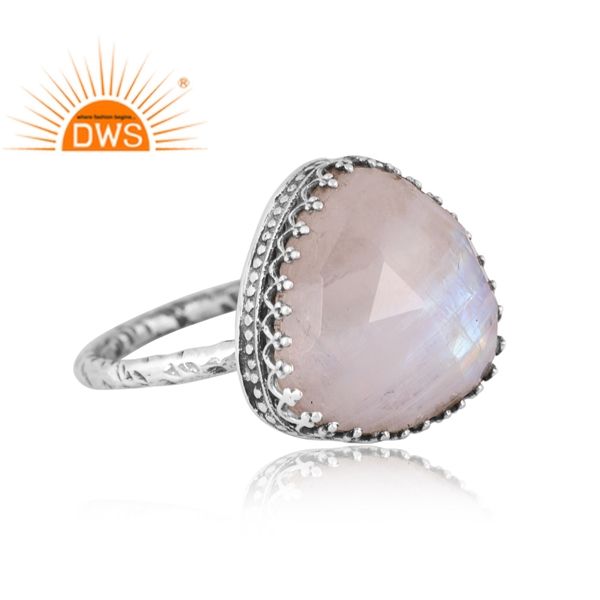แหวนพลอยพลอยสีรุ้งและพระจันทร์สีเงินสเตอร์ลิงทำจากแร่เงินสีรุ้งแบบเรียงซ้อนได้ตามต้องการ