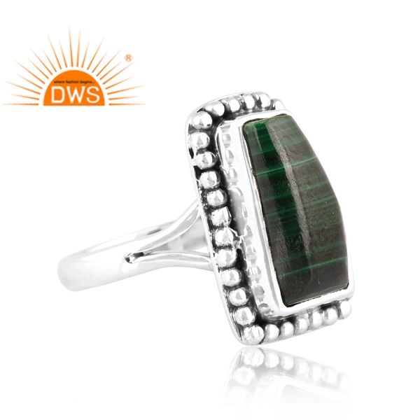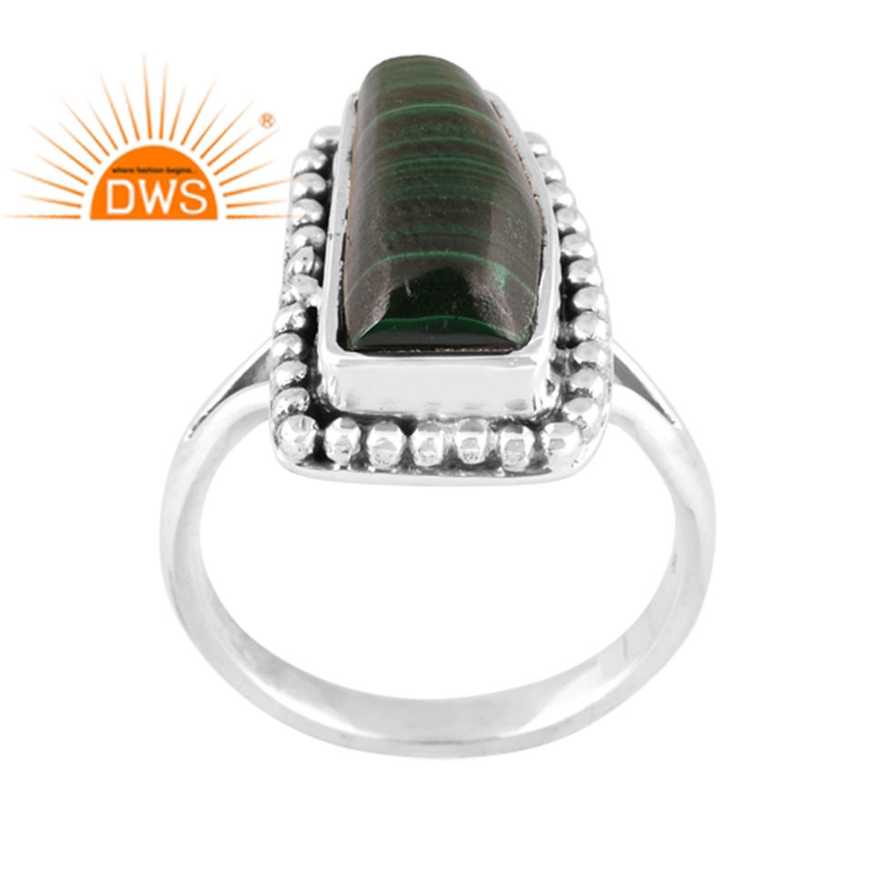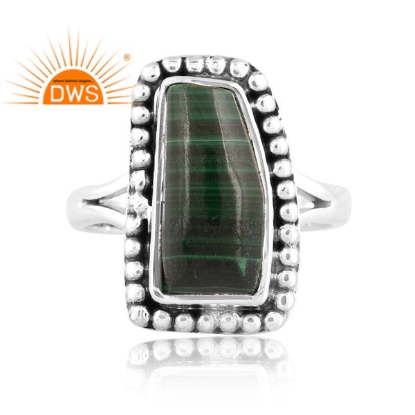 แหวนแยกอัญมณีมาลาไคต์ธรรมชาติสีเงินสเตอร์ลิงออกซิไดซ์แบบออกแบบได้ตามต้องการ