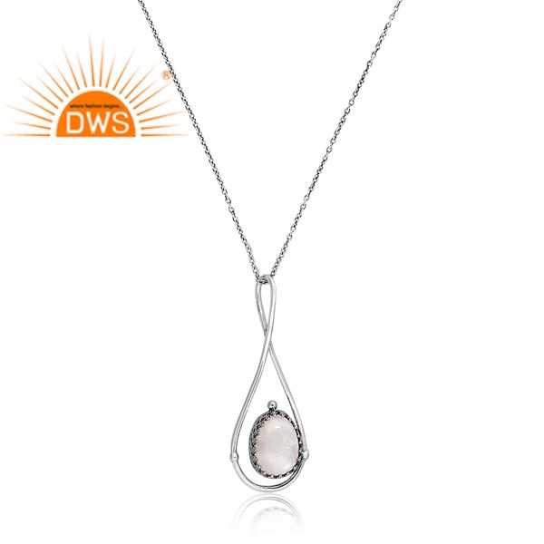 สร้อยคอจี้อัญมณีรูปพระจันทร์สีเงินสเตอร์ลิงสีรุ้งธรรมชาติผลิตได้ตามต้องการ