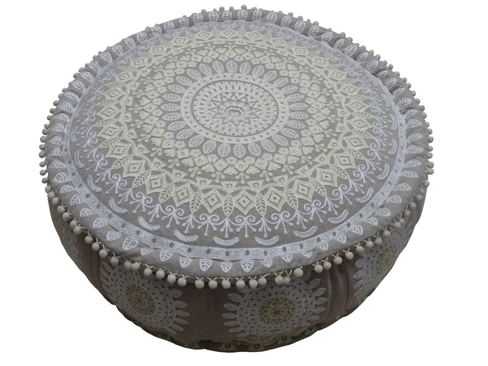 หมอนผ้าฝ้ายอินเดียปักสีขาวทรงกลมทำด้วยมือ