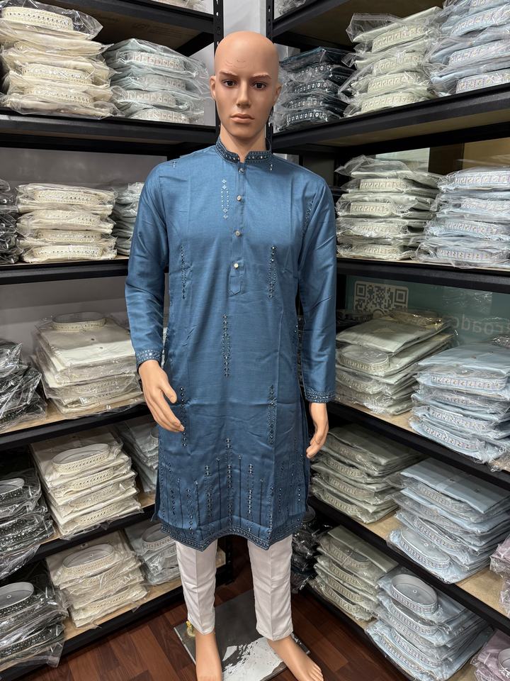 Product Name:Latest Premium Smart Silk With Mirror Work Embroidery Kurta Pajama