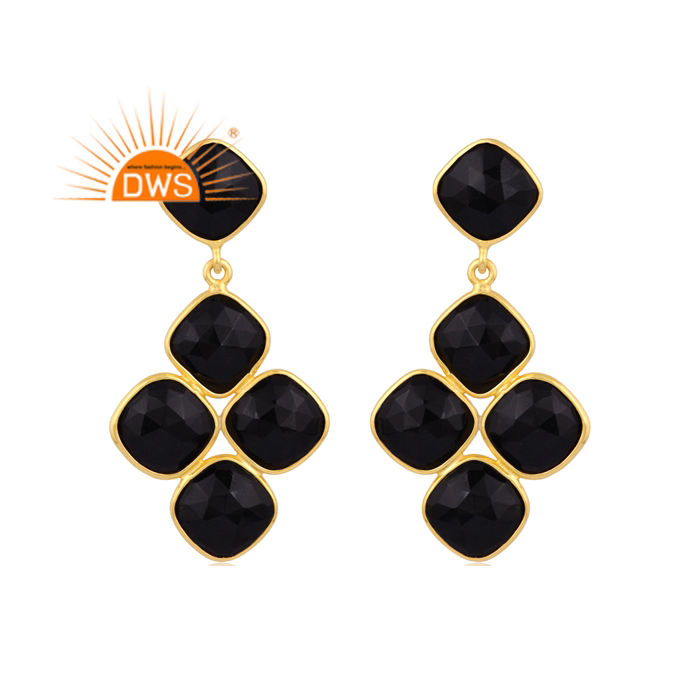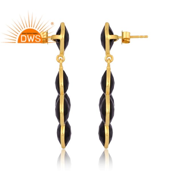 ต่างหูห้อยอัญมณีโอนิกซ์สีดำธรรมชาติชุบทอง18K แบบเงินสเตอร์ลิงต่างหูแบบห้อยเครื่องประดับแบบละเอียด