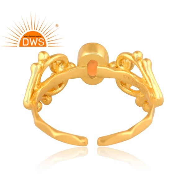 แหวนเงินแท้18K ประดับมุกอัญมณีธรรมชาติชุบทอง18K แบบปรับได้จากผู้ผลิตเครื่องประดับชั้นดี