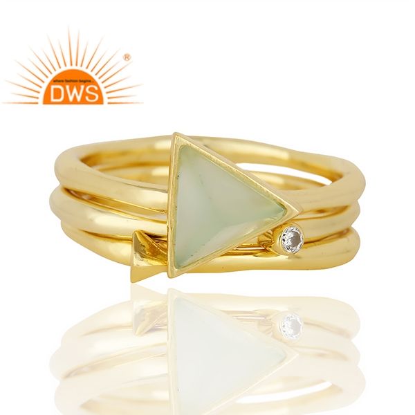 ชุดอัญมณีคาลซิโดนีชุบทองเงินสเตอร์ลิงรุ่นล่าสุดมีแหวนวางซ้อนกันได้3แบบ