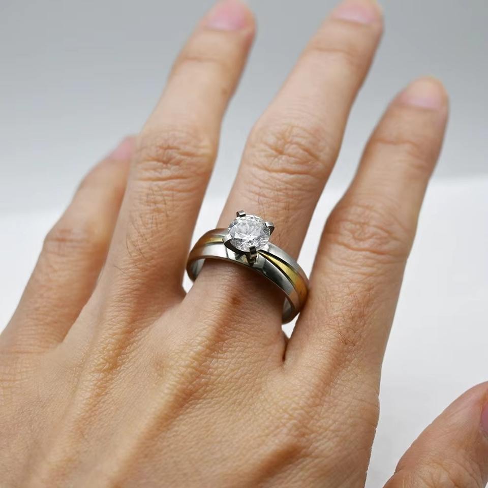 แหวนแต่งงานสแตนเลสสีทอง18K ทันสมัยดีไซน์แบบฝังเรียบง่ายพร้อมช่องเปิดปรับขนาดได้