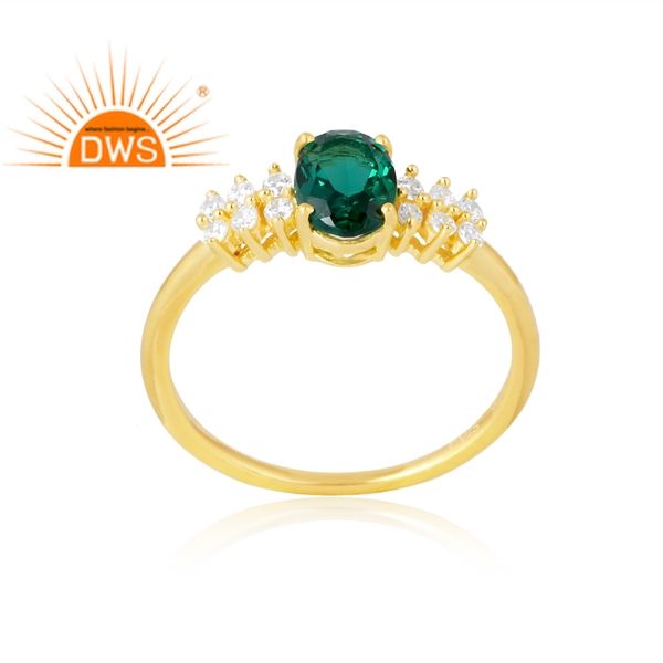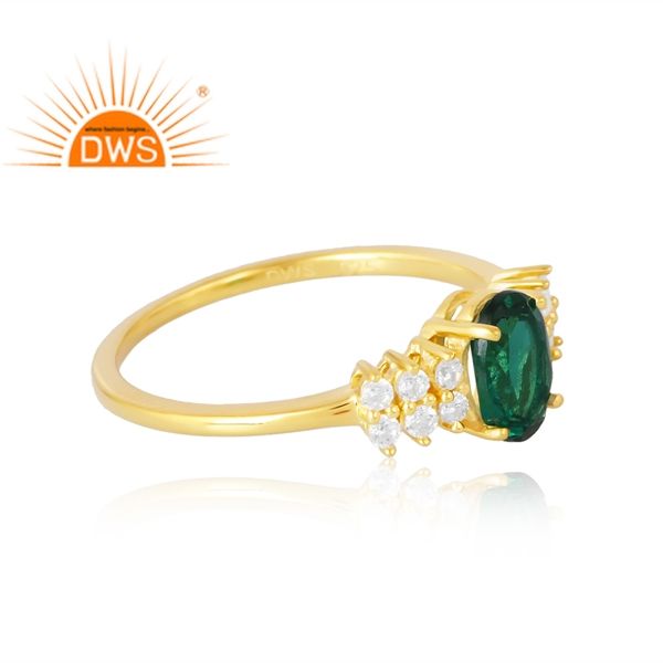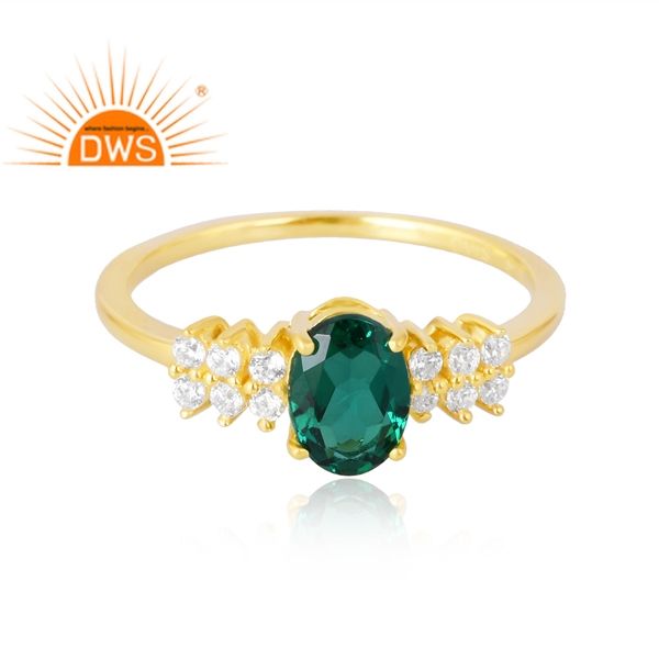 แหวนเงินแท้ 925 ชุบทอง 18K ประดับเพชร CZ และมรกตธรรมชาติ ดีไซน์ทันสมัย สำหรับผู้หญิง ของขวัญสำหรับเธอ