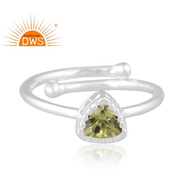 แหวนเงินแท้ดีไซน์ทันสมัยประดับพลอยเพอริดอทดีไซน์ปรับขนาดได้จากผู้ผลิตเครื่องประดับ