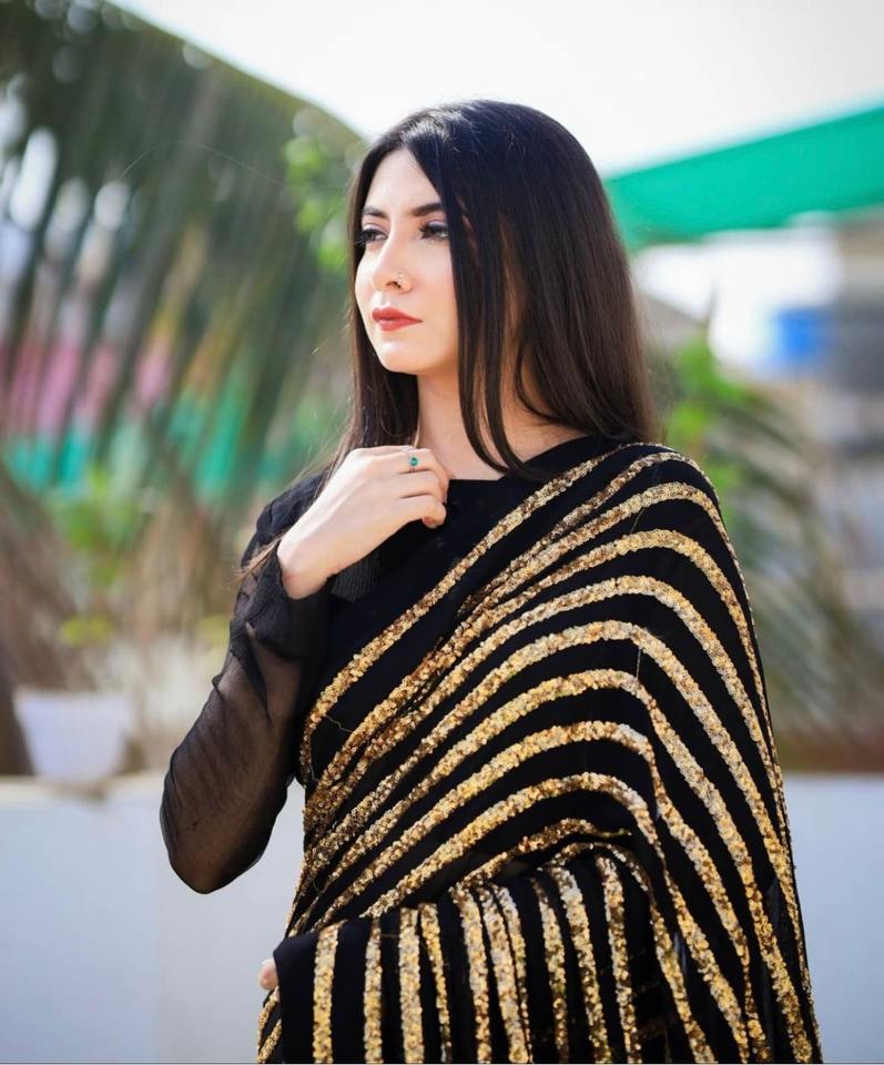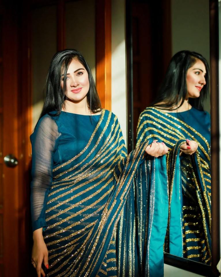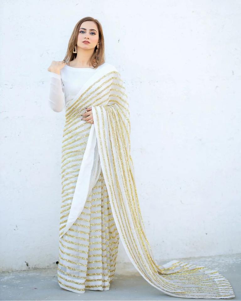 ชื่อผลิตภัณฑ์:เลื่อม Georgette Saree เสื้อ