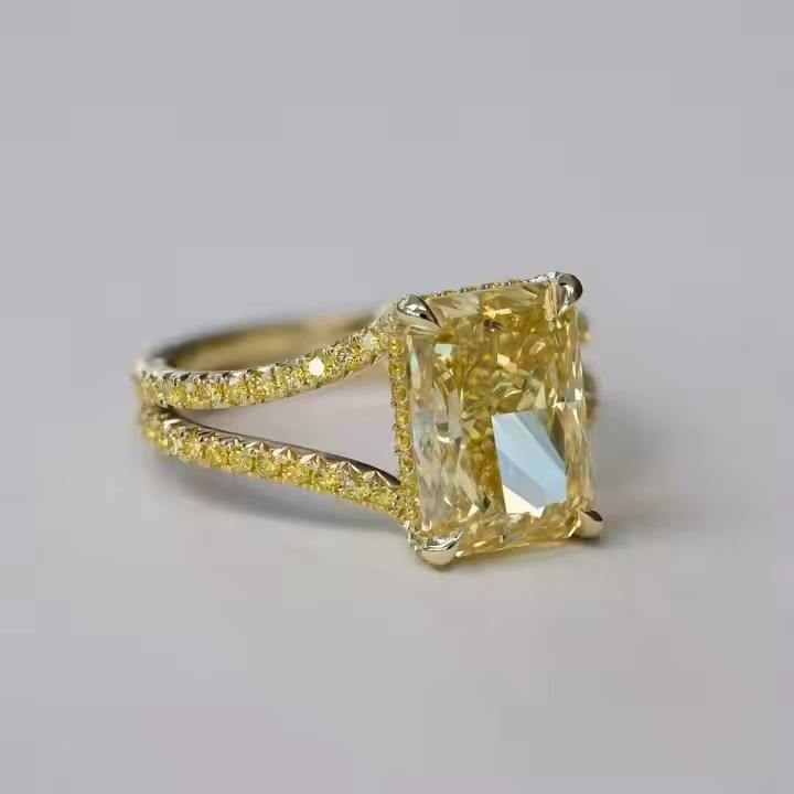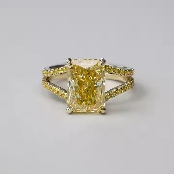แหวนหมั้นเพชรสีเหลืองสดใสดีไซน์โดดเด่น2.50CT ใหม่ล่าสุด & ไม่เหมือนใครแหวนหมั้นเพชรสำหรับปลูกในห้องปฏิบัติการสีเหลืองทองฝรั่งเศส