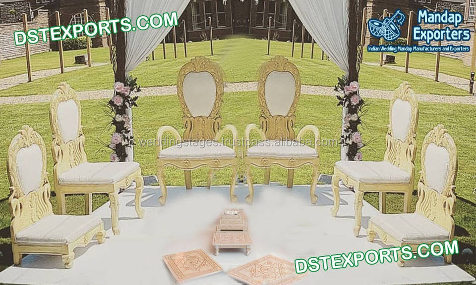 ชุดเก้าอี้ Mandap Leaf สำหรับงานแต่งงาน,เก้าอี้ Mandap ออกแบบลายใบไม้อินเดียสหราชอาณาจักรเก้าอี้ Mandap จากไม้ดีไซน์ล่าสุด