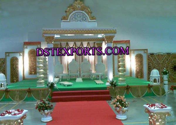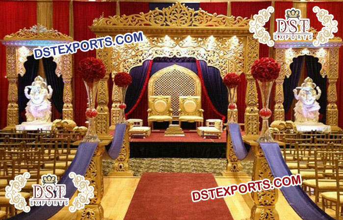 ตกแต่งมณฑปแบบโมเดิร์นล่าสุด ลายเพสลีย์ ไฟเบอร์กลาสสีทอง จัลลี ปรับแต่งสีและดีไซน์ได้ ทนทาน งานแต่งงานแบบดั้งเดิมของอินเดียกูจารัต