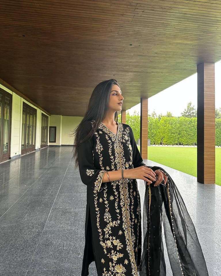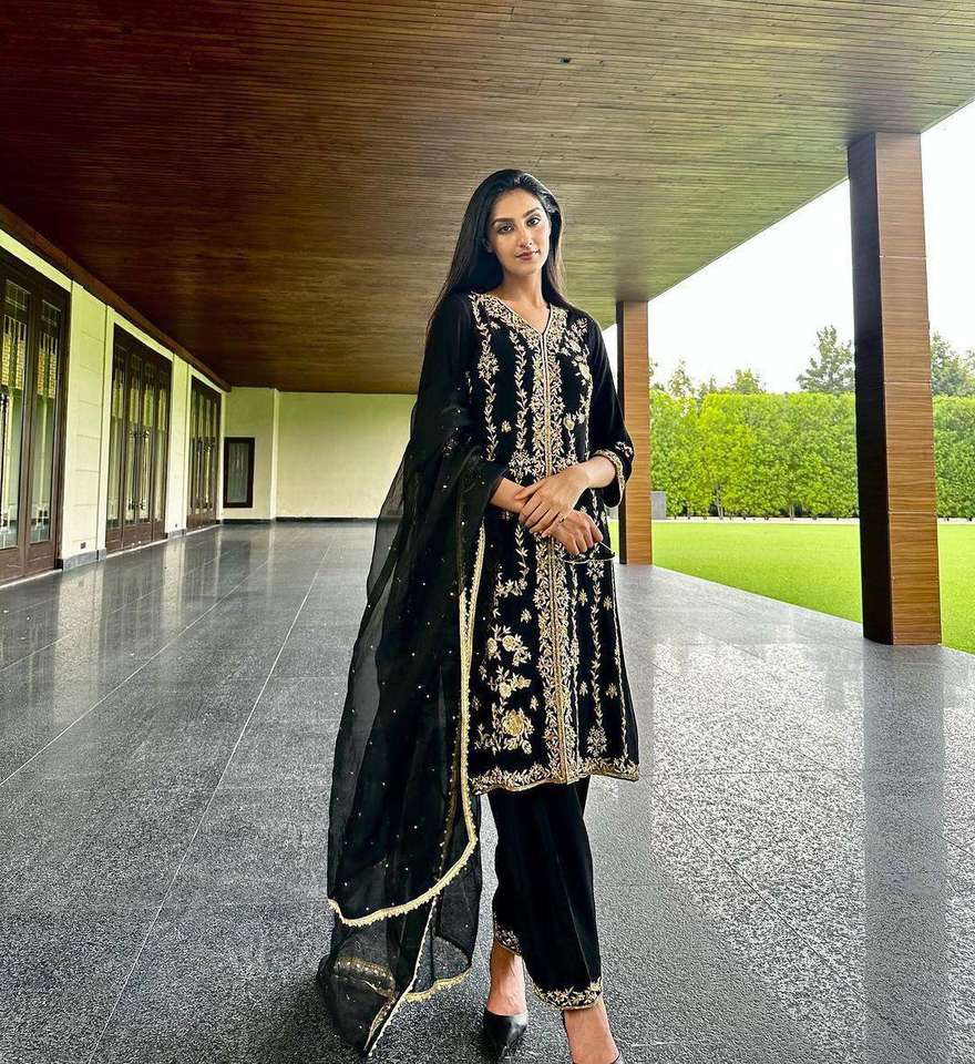 ชื่อผลิตภัณฑ์:ผ้ากำมะหยี่บริสุทธิ์ปักลายบน Palazzo และ Dupatta