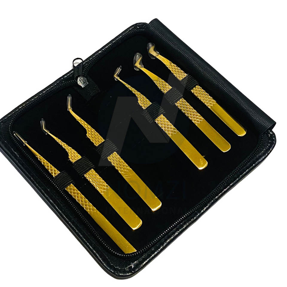 แหนบต่อขนตาแบบมืออาชีพเคลือบพลาสมาปลายแหลมสีทองทำจากสแตนเลสสีทอง