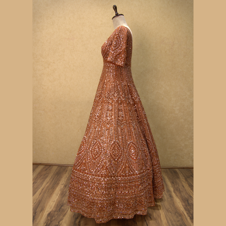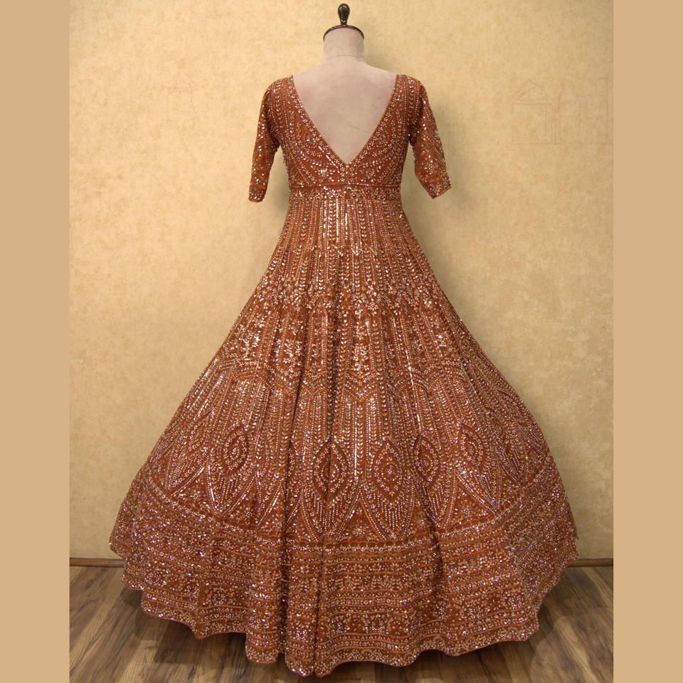ชุดเดรสไวน์ตะวันตกอินโดพร้อมพู่ดอริและงานปักลวดลายสวยงามสำหรับงานแต่งงาน