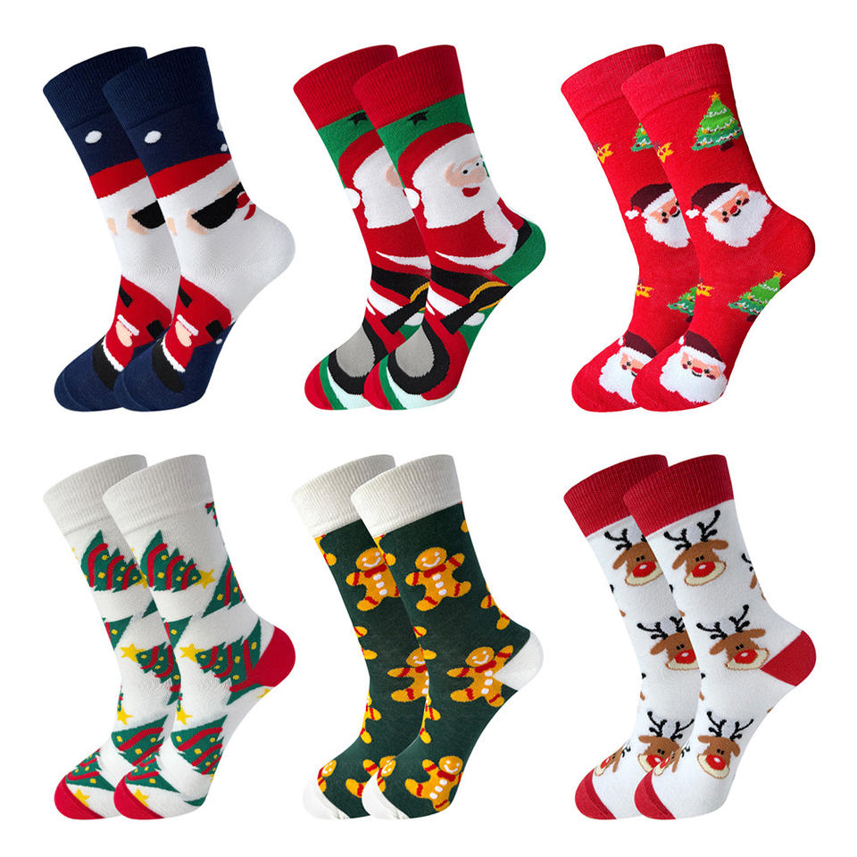ถุงน่องครึ่งน่องลายการ์ตูนซานตาคลอสพิมพ์ลายกวางเรนเดียร์ผ้าฝ้ายโพลีเอสเตอร์นุ่มเป็นมิตรกับสิ่งแวดล้อมสำหรับฤดูหนาว