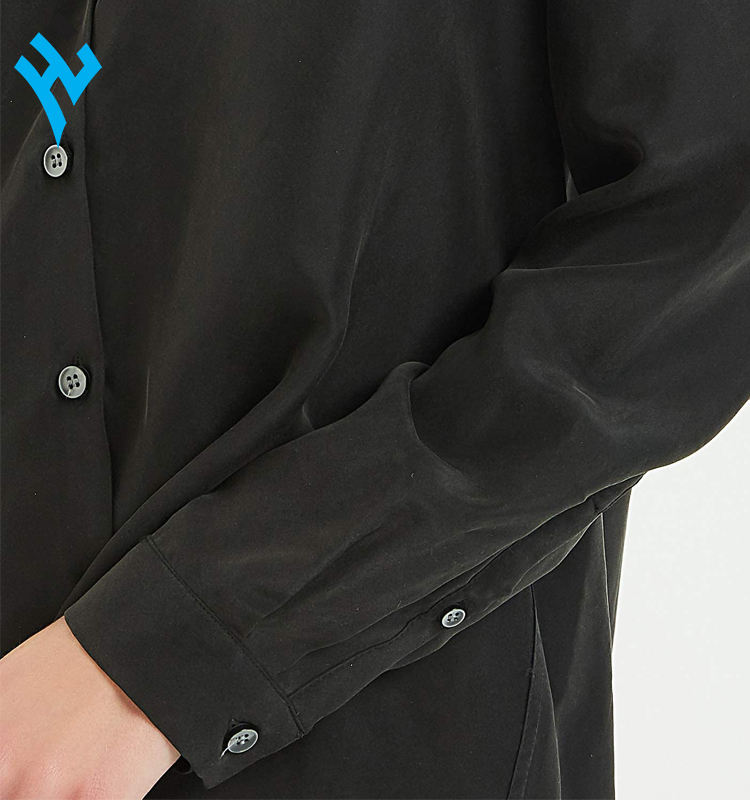 เสื้อเบลาส์ผ้าซาติน2025สีดำของผู้หญิงเสื้อผู้หญิงมีปกเสื้อชุดผ้าไหมสีดำแขนยาวสำหรับฤดูร้อนใหม่ล่าสุด