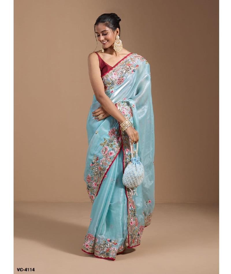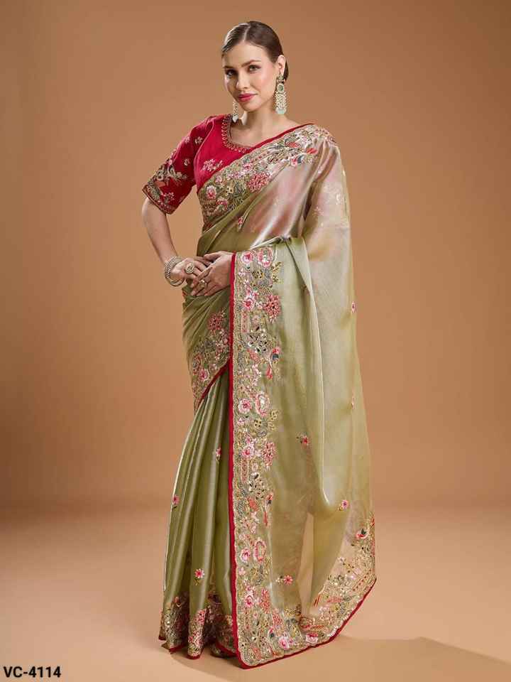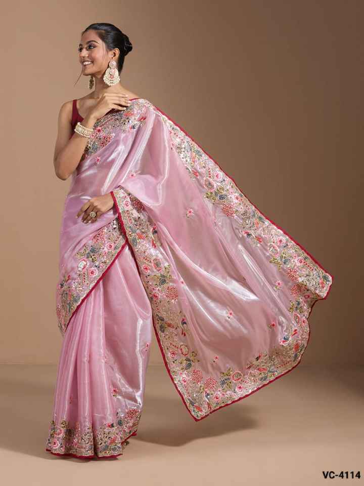 ชุดส่าหรีและเสื้อผ้าสำหรับงานเลี้ยงผู้หญิงรุ่นล่าสุด ผ้าจิมมี่โชเนื้อหนา ปักด้วยด้ายหลากหลายแบบ ประดับด้วยการปักลายและเลื่อมอย่างสวยงาม พร้อมด้วยการตัดเย็บแบบแฟนซี