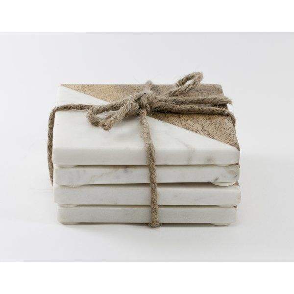 ที่รองแก้วหินอ่อนธรรมชาติสวยงามและหินอ่อนไม้สองสีสำหรับตกแต่งบ้านและป้องกันโต๊ะรับประทานอาหาร