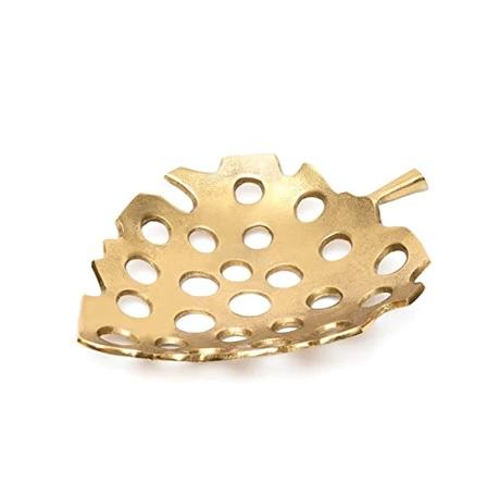ชามผลไม้ทองเหลืองทรงใบพร้อมรูสำหรับตกแต่งงานแต่งงานและอุปกรณ์ชามผลไม้ทองเหลืองดีไซน์ล่าสุด