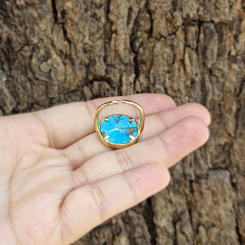 แหวนทองเหลืองชุบทอง 18k ดีไซน์ล่าสุด สีฟ้าโมฮาวี ทองแดง เทอร์ควอยซ์ รูปทรงกลม ปรับขนาดได้ แหวนแฟชั่นแบบเปิด