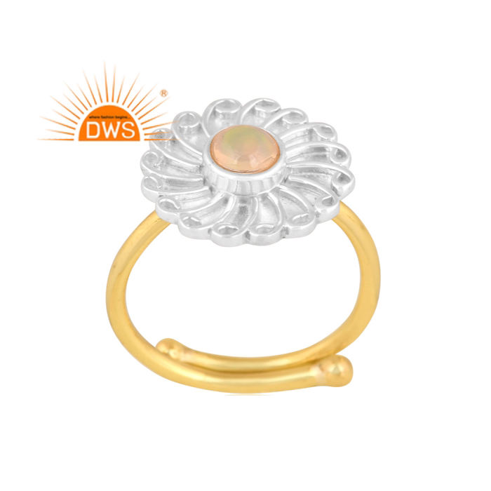 ล่าสุดทำด้วยมือ18พันชุบทองธรรมชาติเอธิโอเปียโอปอลพลอยดอกไม้ออกแบบแหวนซ้อน Demi ผู้ผลิตเครื่องประดับปรับ