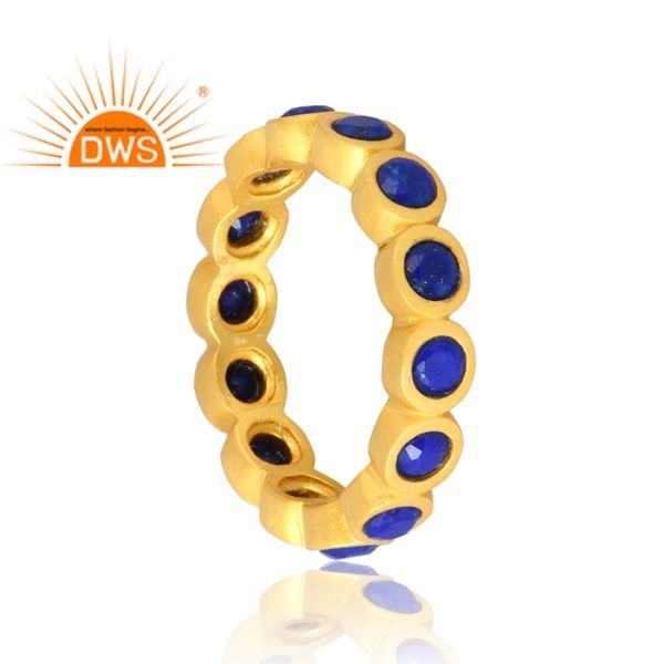 แหวนพลอย Lapis ธรรมชาติชุบทอง18K 925เงินสเตอร์ลิงเครื่องประดับแบบละเอียด