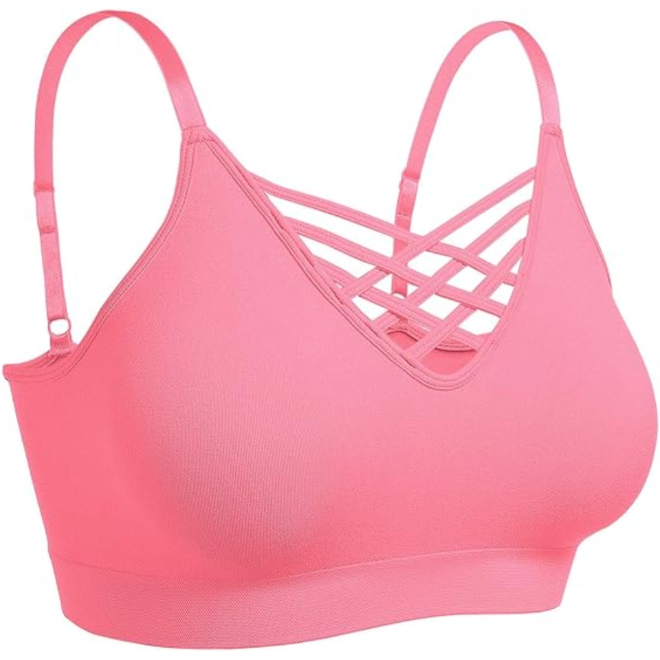 สปอร์ตบราไร้รอยต่อสำหรับผู้หญิงบราออกกำลังกายเล่นฟิตเนสแบบไขว้ด้านหลัง