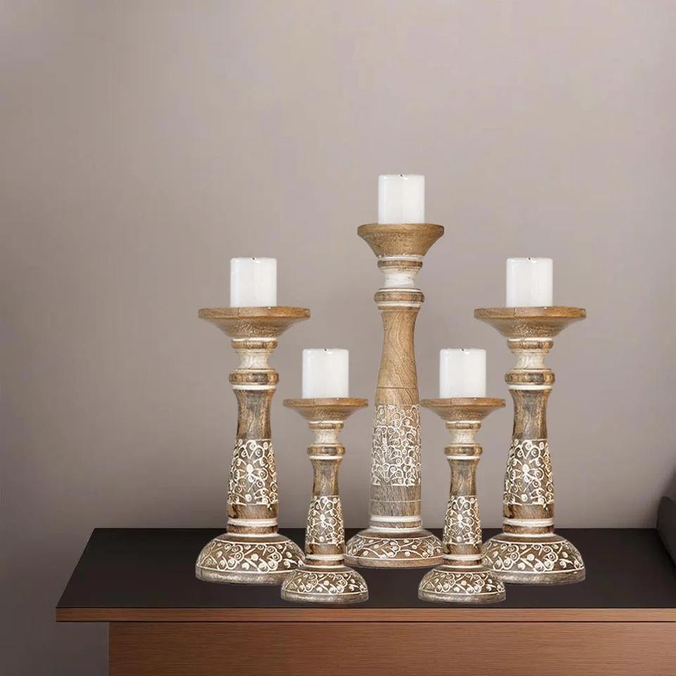 เชิงเทียนไม้ที่มีคุณภาพระดับพรีเมี่ยมของไม้ดีไซน์โบราณเทียนสูงทำจากไม้เชิงเทียนตั้งโต๊ะทำจากไม้ (ชุด3ชิ้น)