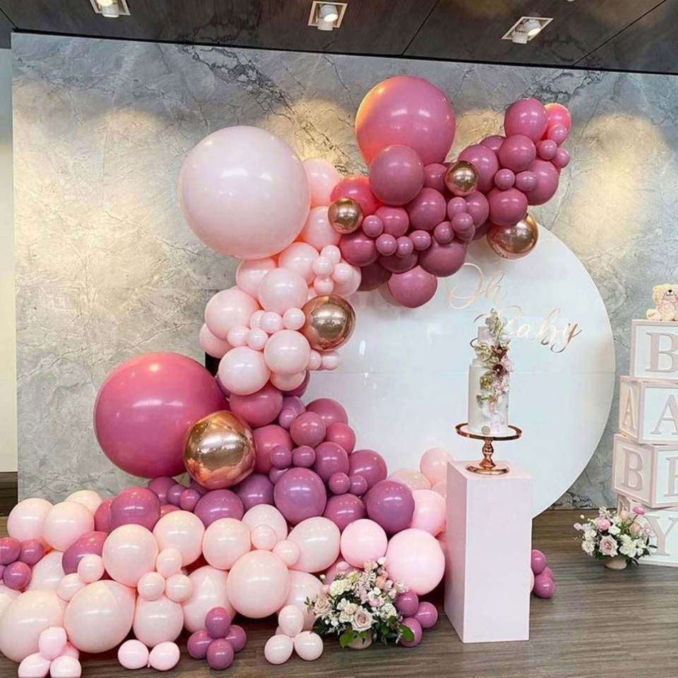 ชุดอุปกรณ์ตกแต่งซุ้มลูกโป่งลาเท็กซ์แบบมันเงา สีชมพู ฟ้า ทอง สำหรับงานแต่งงาน งานเลี้ยงฉลองเด็กแรกเกิด คริสต์มาส และเทศกาลต่างๆ