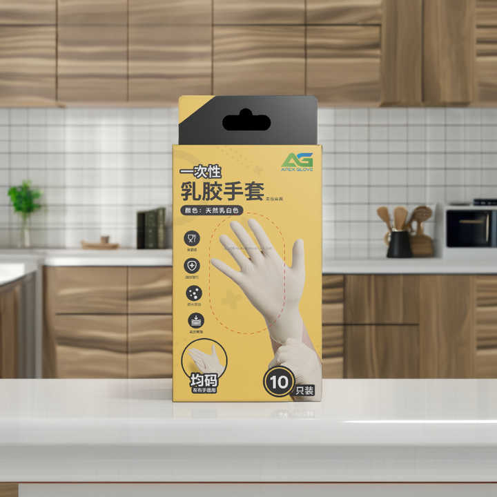ถุงมือยางลาเท็กซ์แบบใช้แล้วทิ้งชนิดผง บรรจุภัณฑ์แบบกำหนดเอง เรียบเนียน สวมใส่สบาย ผลิตจากยางธรรมชาติ ผงน้อย