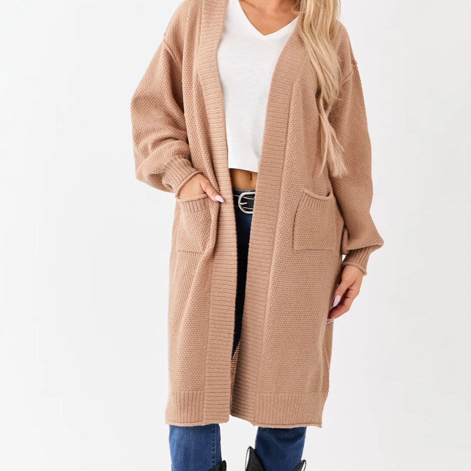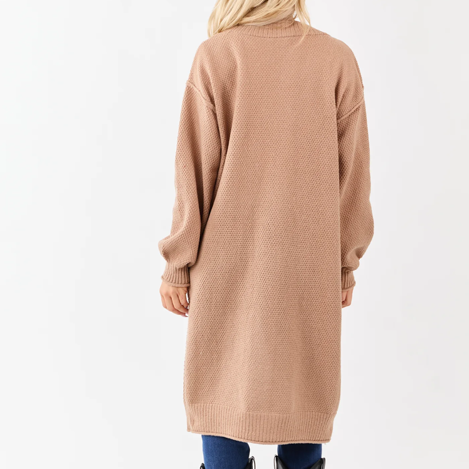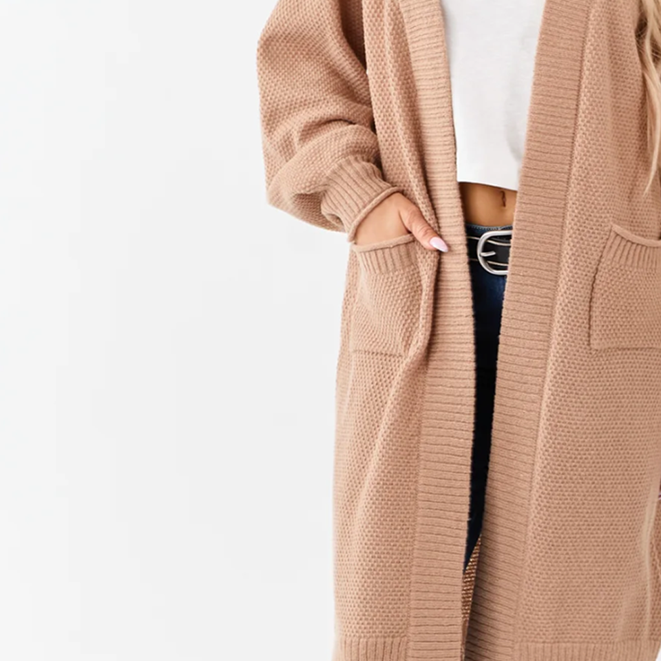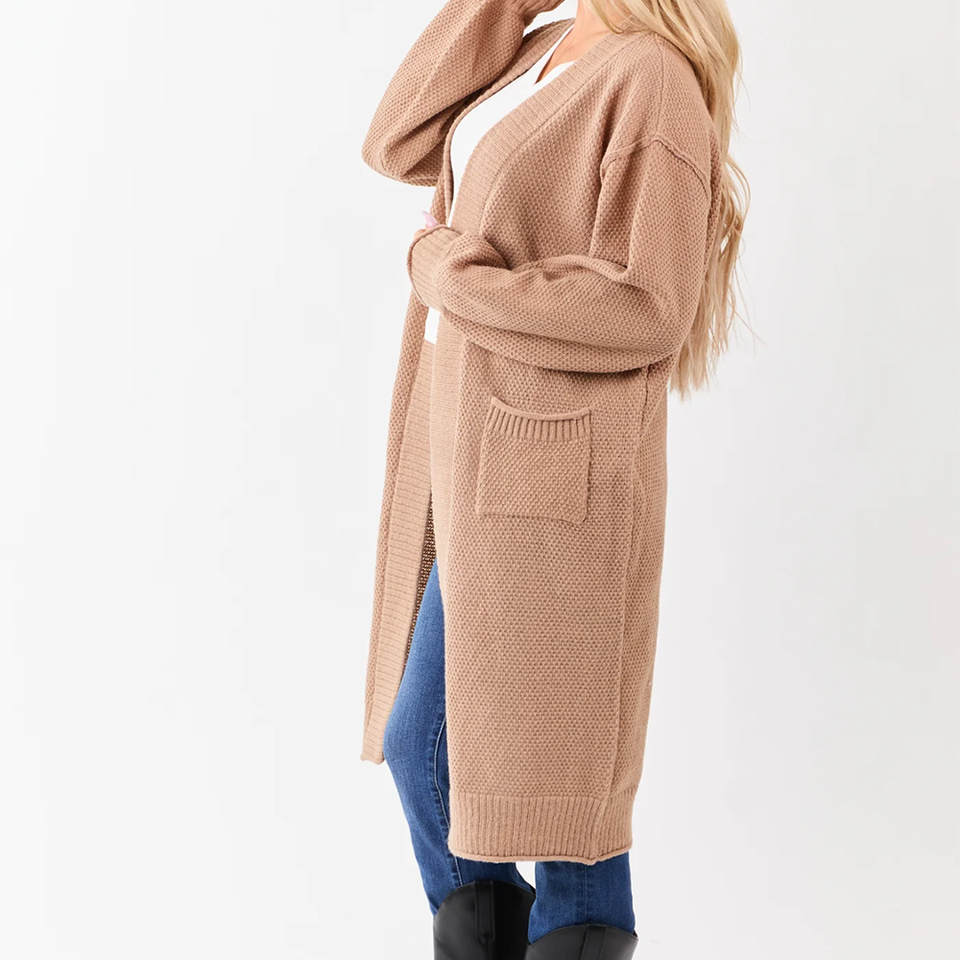 เสื้อคลุมคาร์ดิแกนไหมพรมเนื้อนุ่มแบบหนา ผ้าวูล/แคชเมียร์ ทรงยาว โอเวอร์ไซส์ มีกระเป๋าปะ สำหรับใส่ซ้อนกัน ลายทอแบบ Winter Latte