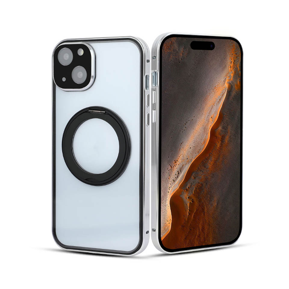 เคสโทรศัพท์มือถือ SJK664 แบบใส หมุนได้ แม่เหล็กกันกระแทก ผลิตจากอะลูมิเนียมอัลลอย พร้อมที่ชาร์จ 16/15/14/13/12/11 Plus