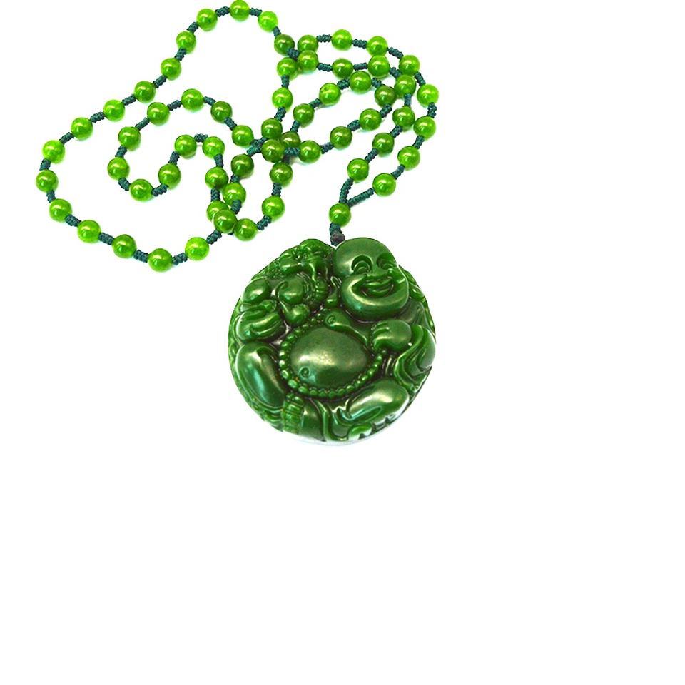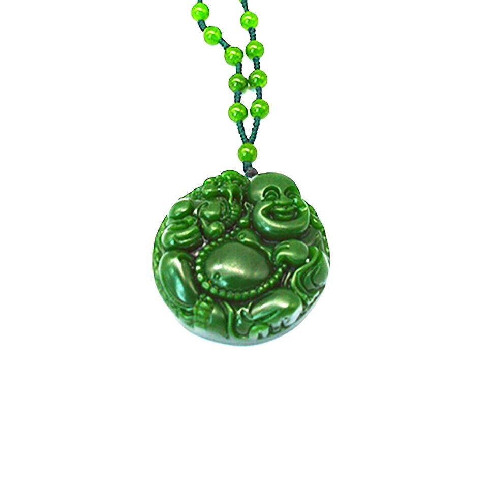 สร้อยคอจี้พระพุทธรูปหัวเราะสร้อยคอหยกสีเขียวพระเจ้าแม่กวนอิมคริสตัลลูกปัดห่วงโซ่พลอยเครื่องประดับนำโชคสำหรับผู้หญิงผู้ชาย