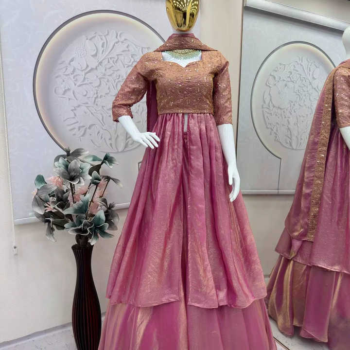 ผ้าชุดราตรี:ผ้าไหมแฟนซีทูโทนเนื้อหนา - *ด้านหน้าและด้านหลังทั้งสองด้าน* งานปักเลื่อมแน่น