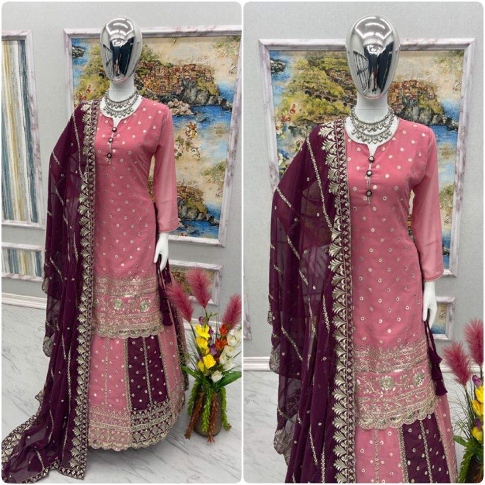 เปิดตัวชุดเลเฮนกาและผ้าคลุมไหล่ดีไซน์ใหม่ล่าสุด ชุดเดรสสำหรับงานปาร์ตี้ ชุดเลเฮนกาสำหรับสุภาพสตรี ผ้าจอร์เจตต์เทียม ชุดสำหรับงานแต่งงาน