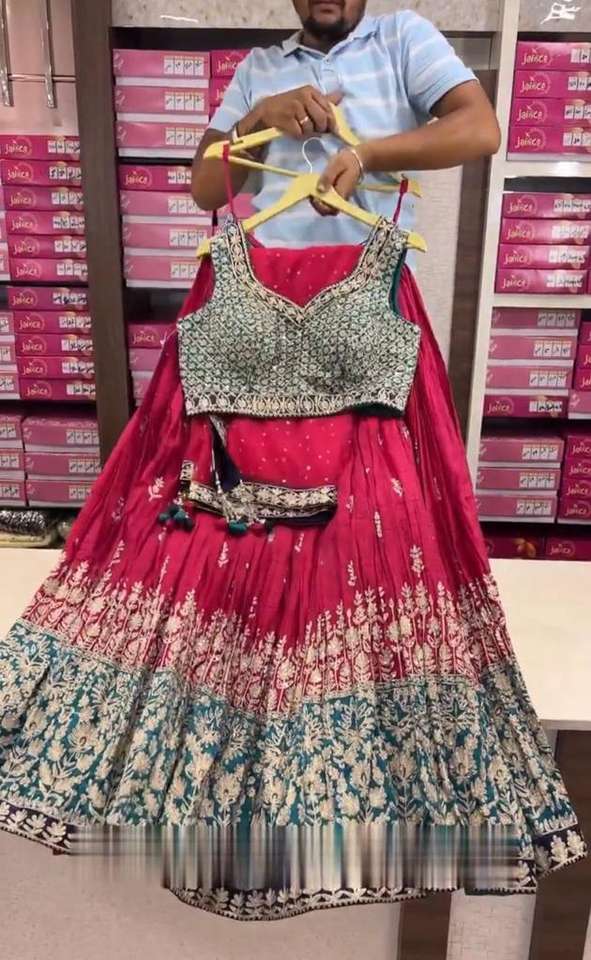 Lehenga กับ choli ทำงานแฟนซีงานเย็บปักถักร้อยหนักและทำจากหิน