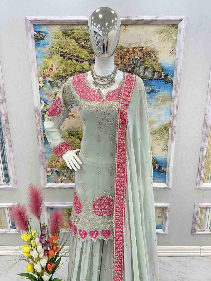 ชุดเดรสผ้าจอร์จเกตเทียมแบบเย็บเต็ม,ชุดเดรสพลุกพล่านและ Dupatta ออกใหม่งานปาร์ตี้ดีไซน์เนอร์