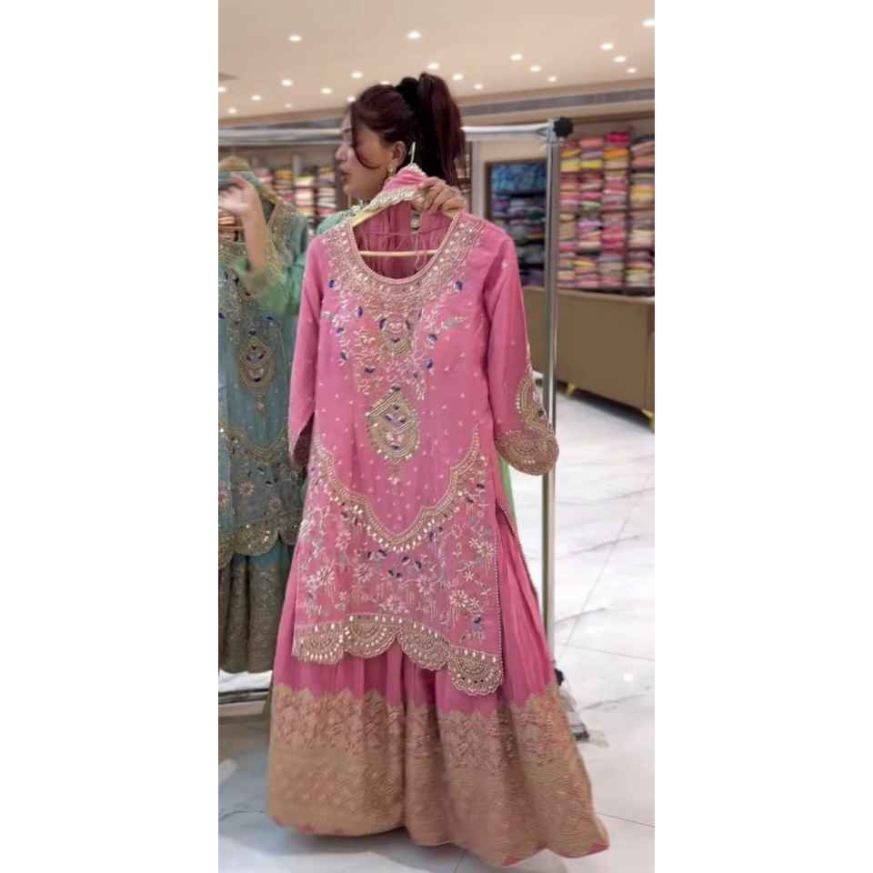เสื้อปาร์ตี้ออกแบบใหม่ชุดสวยสุดเซ็กซี่ชาราพาลาซโซดูพัตต้าทำจากวัสดุเย็บปักเรียงตามลำดับขนาด9มม.