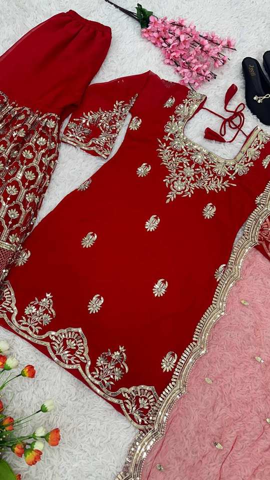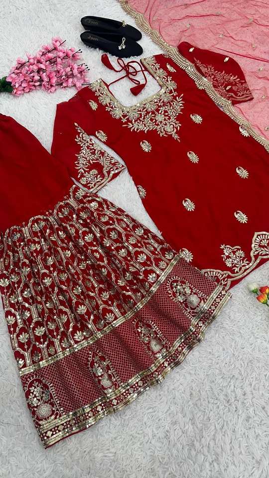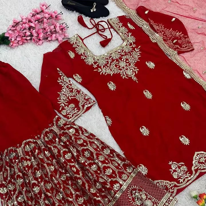 ชุดเดรสออกงานดีไซน์ใหม่สไตล์อินเดียและปากีสถาน พร้อมผ้าคลุมไหล่และชุดชาราร่าเย็บสำเร็จพร้อมใส่ ดีไซน์เก๋ไก๋-TENNECY
