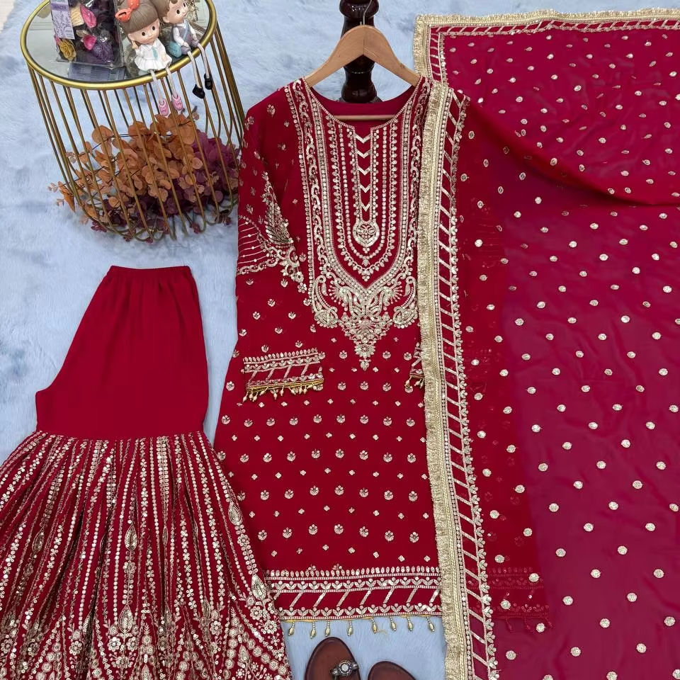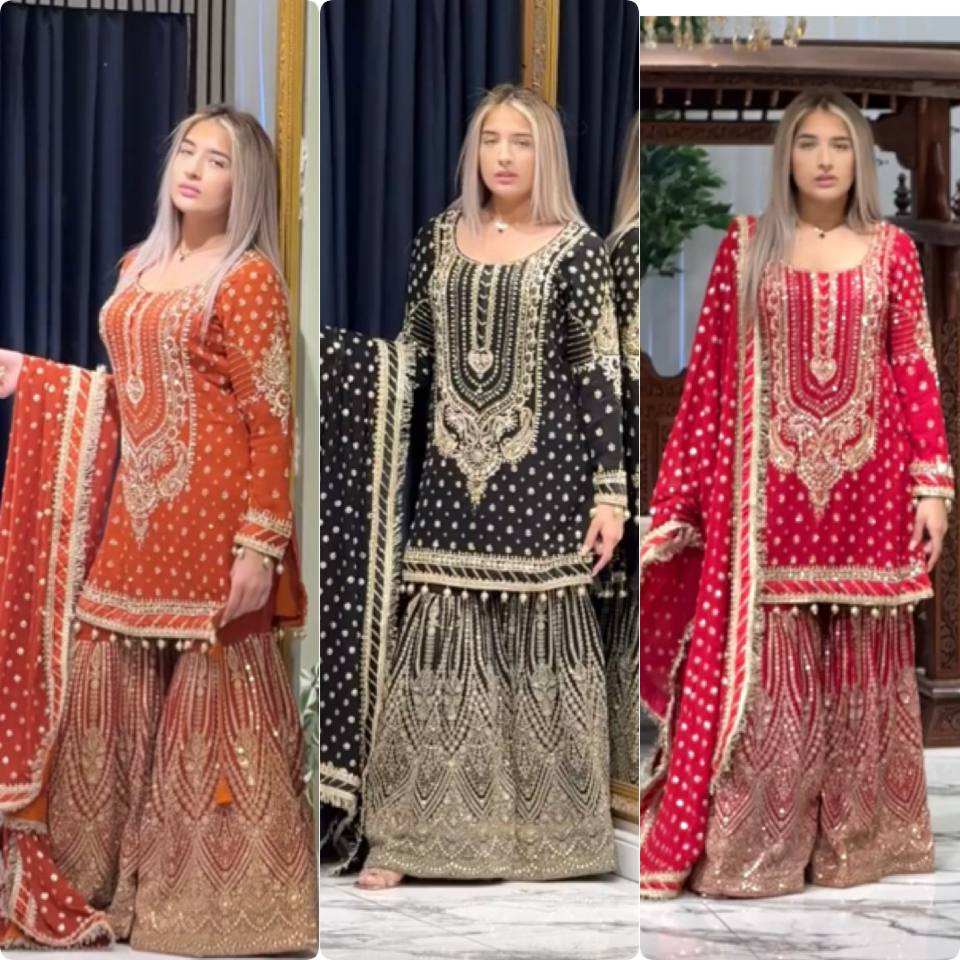 Launching New Designer Party Wear Look Heavy Faux Georgette Top Pant And Dupatta Set Traditional Fully Stitched Dress Suits