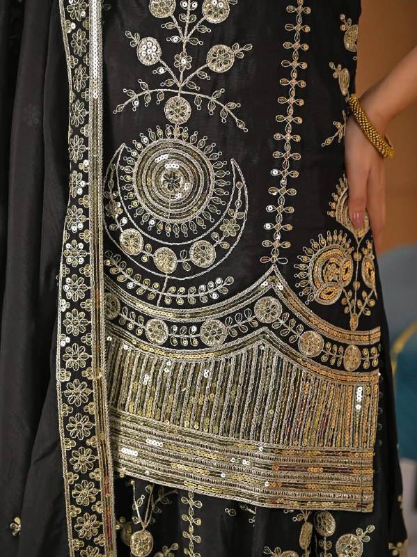 Heavy Vichitra Silk Material* With 5mm Sequence And Embroidery Work