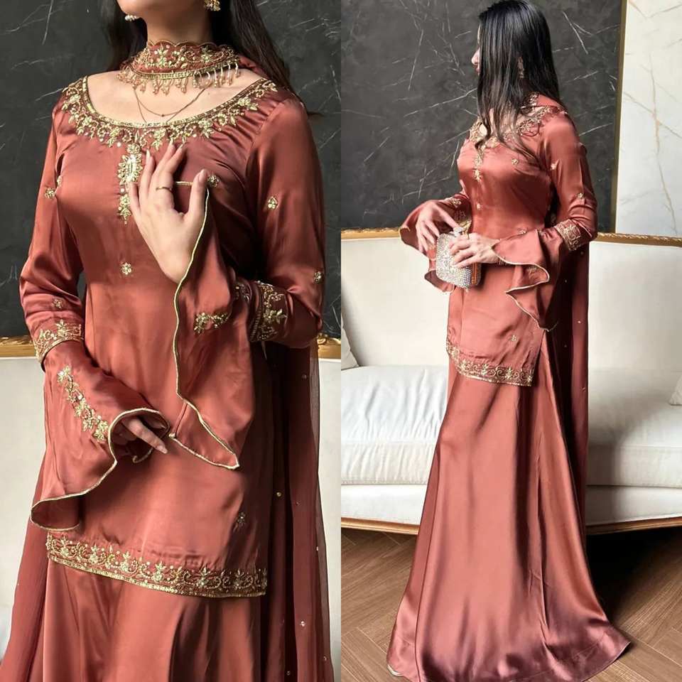 เปิดตัวชุดออกงานดีไซน์ใหม่สุดหรู ผ้าไหมออร์แกนซ่าไนลอนเนื้อนุ่ม พร้อมกางเกงพลลาโซและผ้าคลุมไหล่